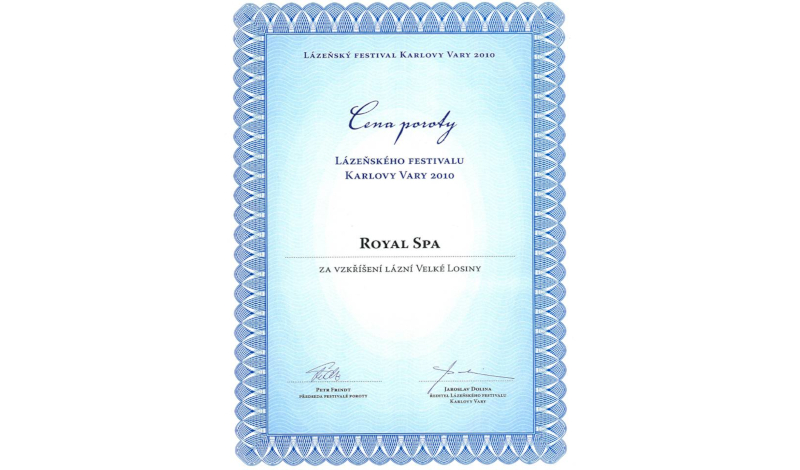řada prestižních ocenění a certifikátů, která reflektují naši špičkovou úroveň lázeňské péče